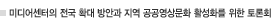 ¹æ¼ÛÀ§¿øÈ¸´Â 2005³â ºÎ»êÁö¿ªÀ» ÇʵηΠÀü±¹ 6°³ ±¤¿ª½Ãµµ¿¡ ´ë±Ô¸ð ½ÃûÀڹ̵ð¾î¼¾Å͸¦ ¼³¸³ÇÒ °ÍÀ̰í, ¹®È°ü±¤ºÎ´Â 2005³âºÎÅÍ 2008³â±îÁö Àü±¹ 15°³ ½Ãµµ¿¡ Áß±Ô¸ðÀÇ Áö¿ª¹Ìµð¾î¼¾Å͸¦ ¼³¸³ÇÑ´Ù´Â °èȹÀ» ¼¼¿ì°í ½ÇÇà¿¡ µé¾î°¬´Ù. °ø°ø¹®È ±â¹Ý½Ã¼³·Î¼ÀÇ ±× Á¸Àç°¨À» ¾Ë·Á³»´Âµ¥ ¸¹Àº ½Ã°£ÀÌ °É·ÈÁö¸¸ ÀÌÁ¦´Â Áö¿ª¹Ìµð¾î¼¾ÅÍÀÇ Çʿ伺À» Á¤ºÎµµ µ¿ÀÇÇϰí ÀÖ´Â ¸¸Å Áö¿ª¹Ìµð¾î¼¾ÅÍ ¼³¸³ ÀÛ¾÷Àº ºü¸£°Ô ÁøÇàµÉ °ÍÀÌ´Ù. ¿ÀÈ÷·Á ¹®Á¦´Â Áö¿ª¿¡¼ Àß ¿î¿µÇϰí Á¤¸» ±¹¹Î¿¡°Ô ¼ºñ½º ÇÒ ¼ö ÀÖ´Â Á¦´ë·Î µÈ