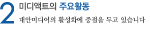 ¸¦ ¸¶·ÃÇÏ¿© ±¹Á¦ÀûÀ¸·Îµµ ¹Ìµð¾×Æ®ÀÇ È°µ¿À» ³Î¸® ¾Ë·Á³»°í ÀÖ´Ù. |