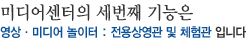 > ¹Ìµð¾×Æ®¾È³» > ¹Ìµð¾î¼¾ÅͶõ > ¹Ìµð¾î¼¾ÅÍÀÇ ±â´É