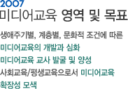 ½ÇõÀ» ¸¸µé¾î¿Ô´Ù. 2007³âÀº À̸¦ ¹ÙÅÁÀ¸·Î ¿¬·É, °èÃþ, ¹®È­Àû Á¶°Ç¿¡ µû¸¥ ¹Ìµð¾î±³À°À» º¸´Ù ü°èÈ­ Çϸç, ¹Ìµð¾î±³À°ÀÌ ¾çÀû ÆØÃ¢±â¿¡ ÁúÀû ¼ºÀåÀ» °¡Áú ¼ö ÀÖ´Â